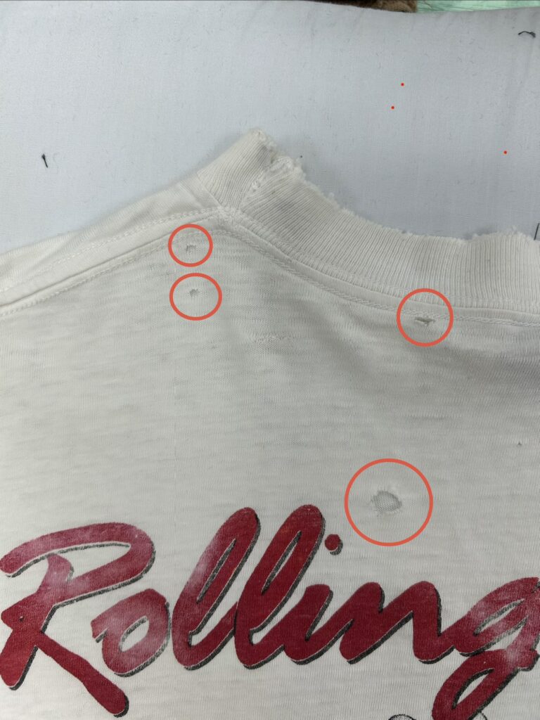 ヴィンテージ Tシャツ ピンホールリペア🪡 2026/2/27 かけつぎではないので、100%ではありませんが😅 この程度でよければ一カ所1000円程でリペア可能です👍 営業時間10:00〜19:00火曜10:00〜18:00水曜定休日 洋服のお直し屋さん ステッチハウス