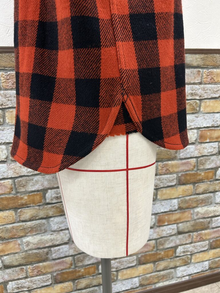 アウターとして羽織ってもよし、インナーとして中に着込んでもよし、使い勝手の良いウールシャツの着丈詰めです✂️
